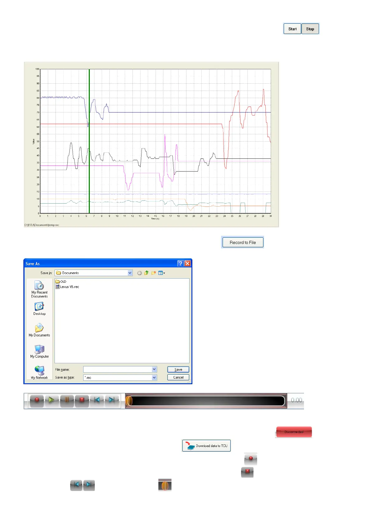 relevant signals to a Log file. When finished press the stop button . Now you can move forward