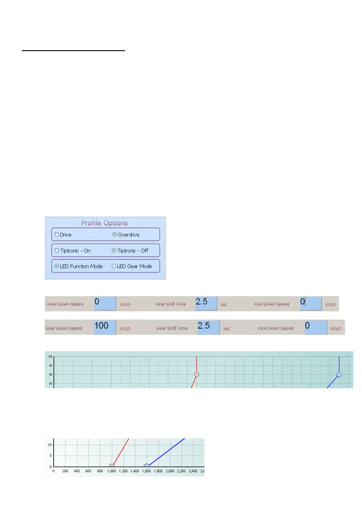 reach 6000RPM under WOT, adjust the Down Shift High Dot to 3000RPM. This will be a