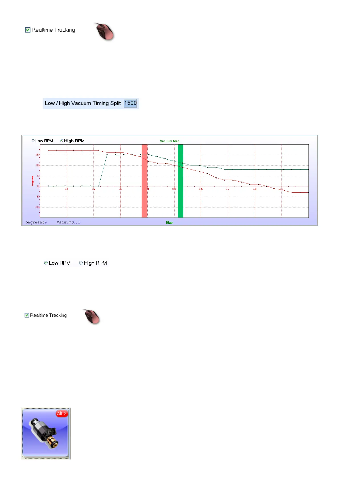 The split for vacuum timing is the blue arrow at 1500 RPM. When the RPM is below this limit the