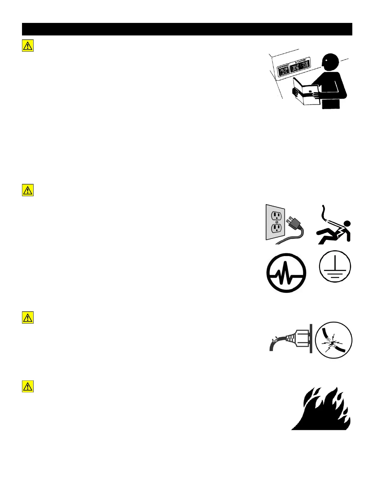 • Make sure before every use that the power cord assembly is not