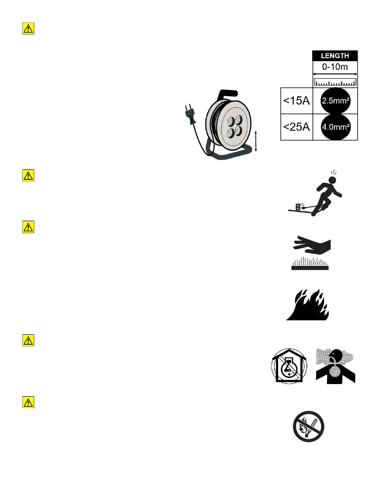 To avoid fire, be alert for leaks of flammable substances from hoses