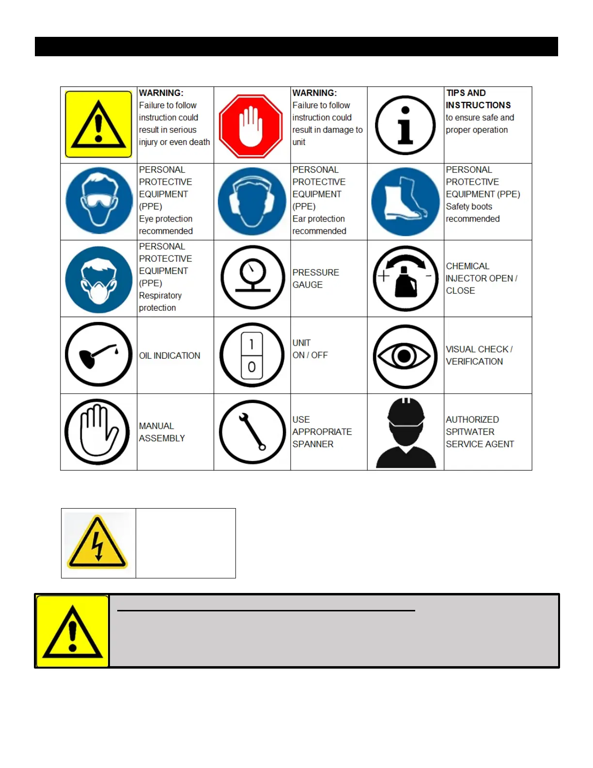 WARNING: This high pressure cleaner shall only be used by persons instructed in its use
