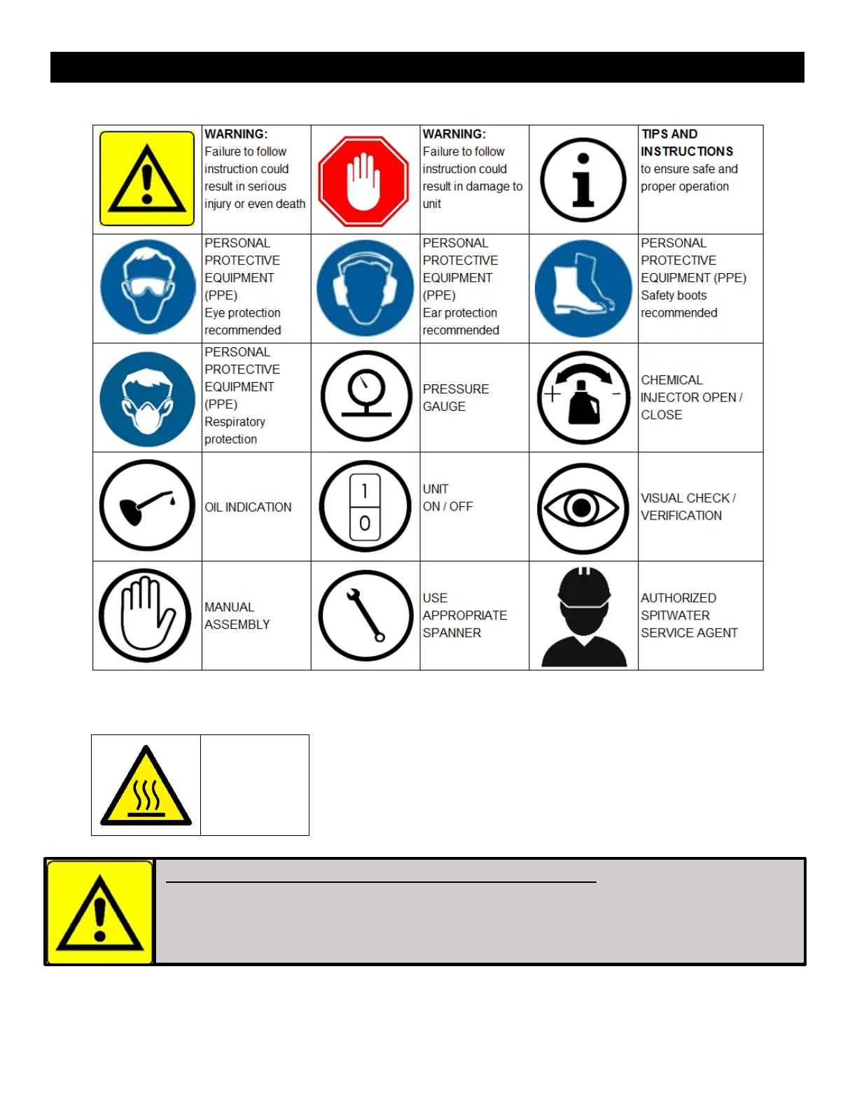 WARNING: This high pressure cleaner shall only be used by persons instructed in its use