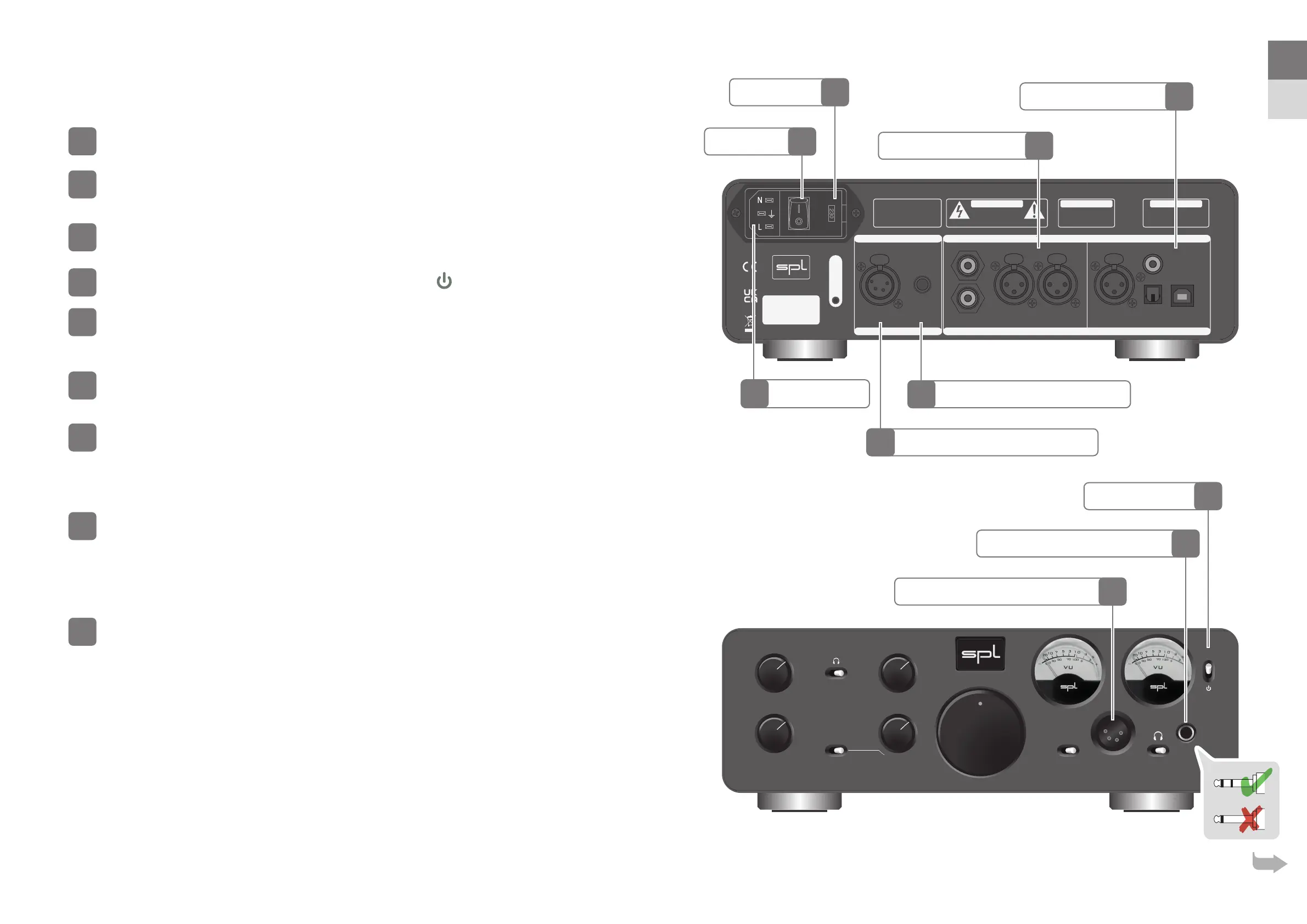 To protect the headphone power ampli er stage and guarantee a long and consistent performance please note: