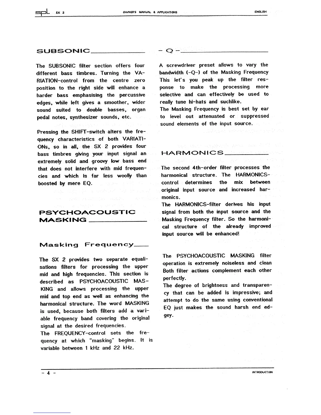SPL SX2 - Subsonic; Harmonics; Masking Frequency