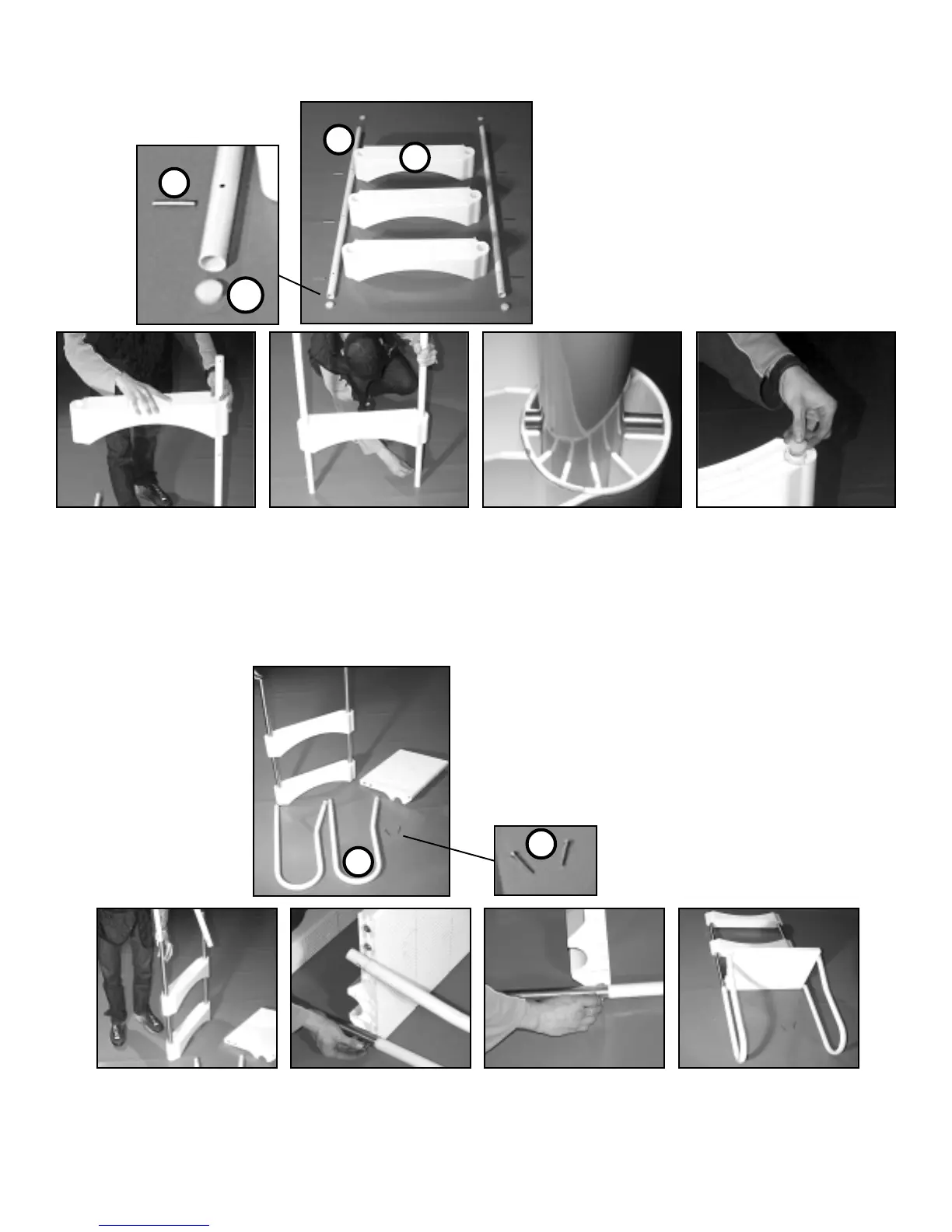 1. Insert the two Top Ladder Handles into the assembled Interior Step’s holes. 2. Insert the Assembled Platform,
