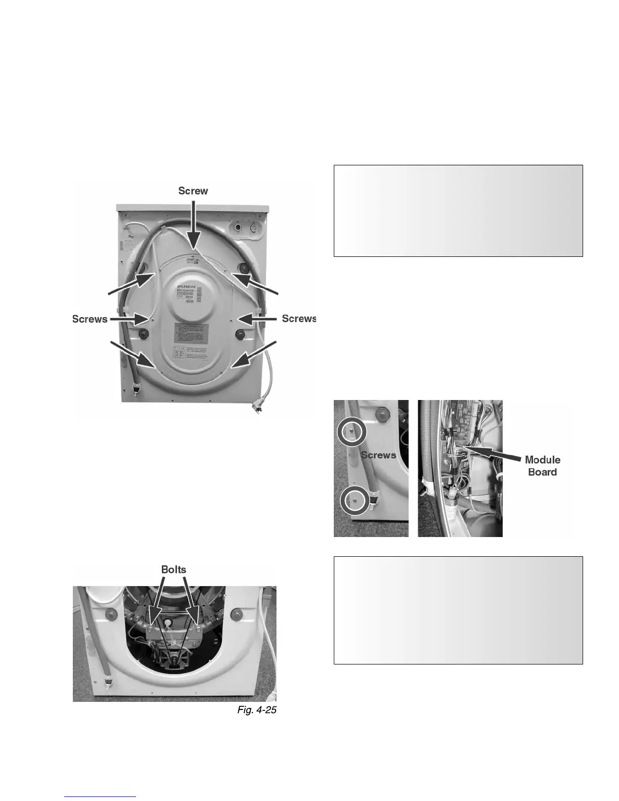 (Fig. 4-25) Slide the motor and bracket out 1 inch from the tub. Be-