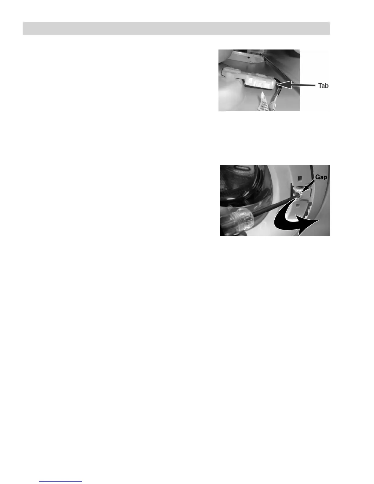 5. Use a small screwdriver to gently push the tab toward the front of the cabinet until you hear a click.