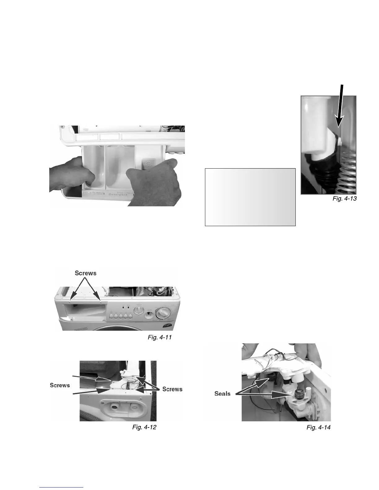 (Fig. 4-11) Remove the four screws securing the detergent dis-