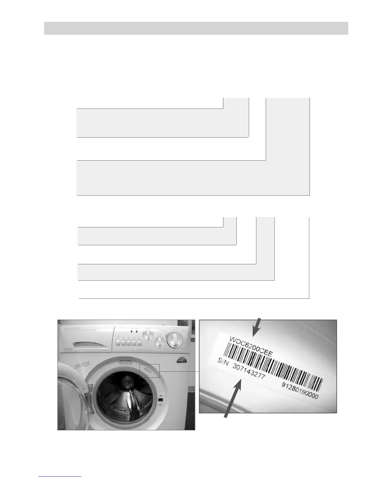 Use these numbers to obtain the Warranty status as well as a history of repairs and service calls for the washer-dryer.