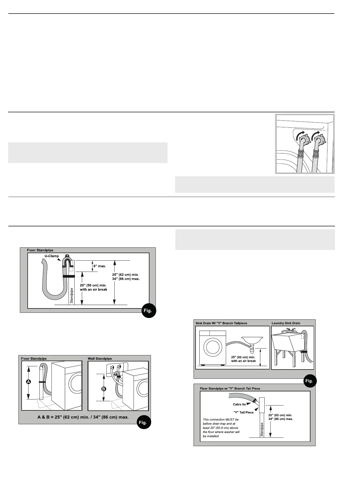 (Fig. 3). When routing the drain hose through cabinets or walls, use a protective