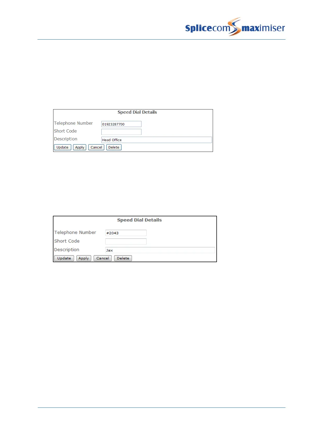 6 In the Short Code field enter the number to be dialled by the User, eg 123. (This entry is not