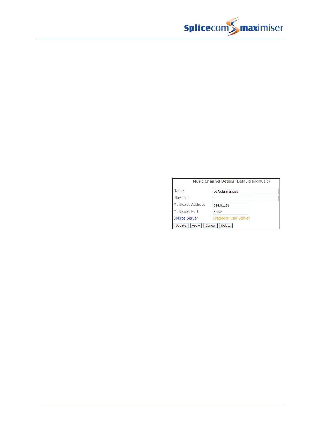 A default Music Channel entry called DefaultHoldMusic