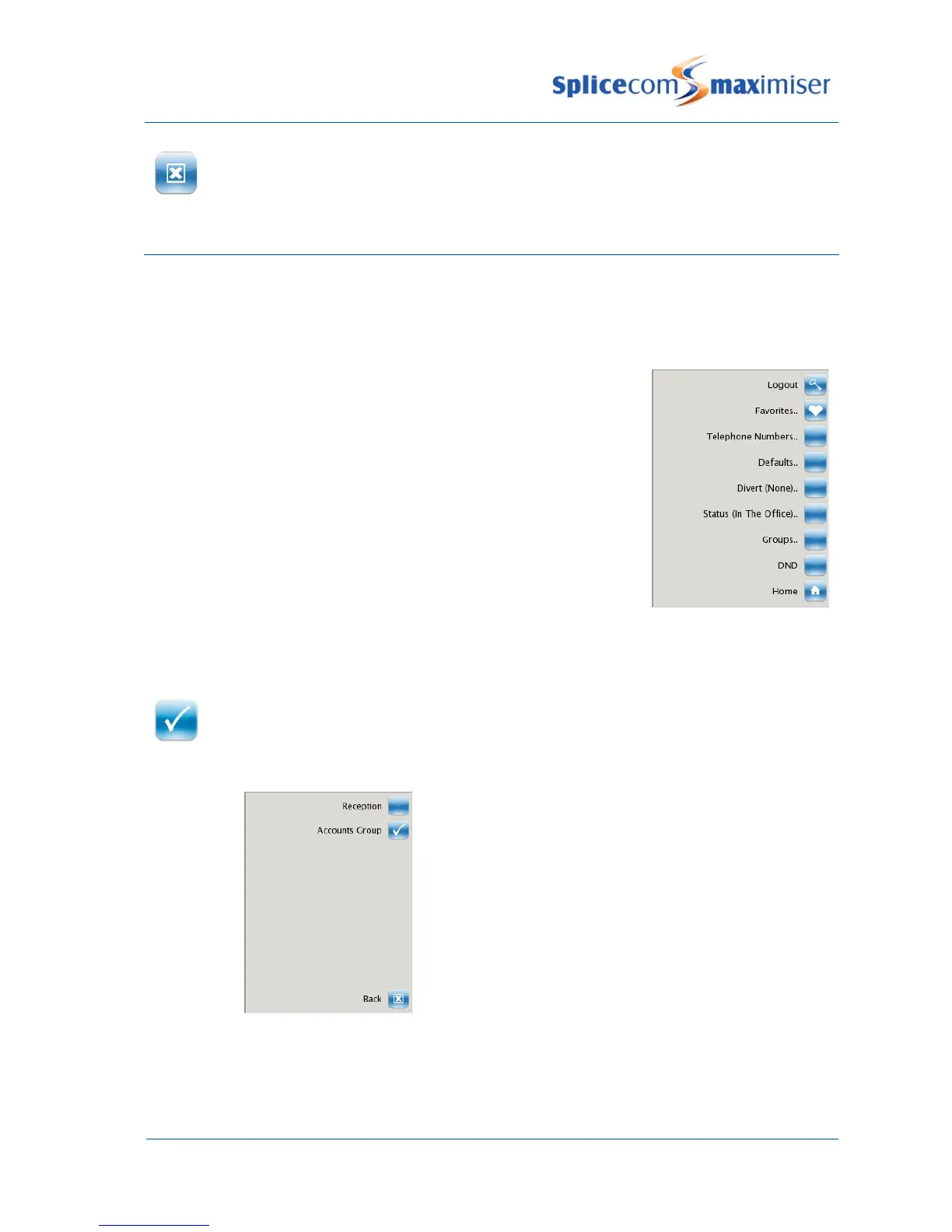 A tick within the Group icon will indicate that you are currently logged into this Group.