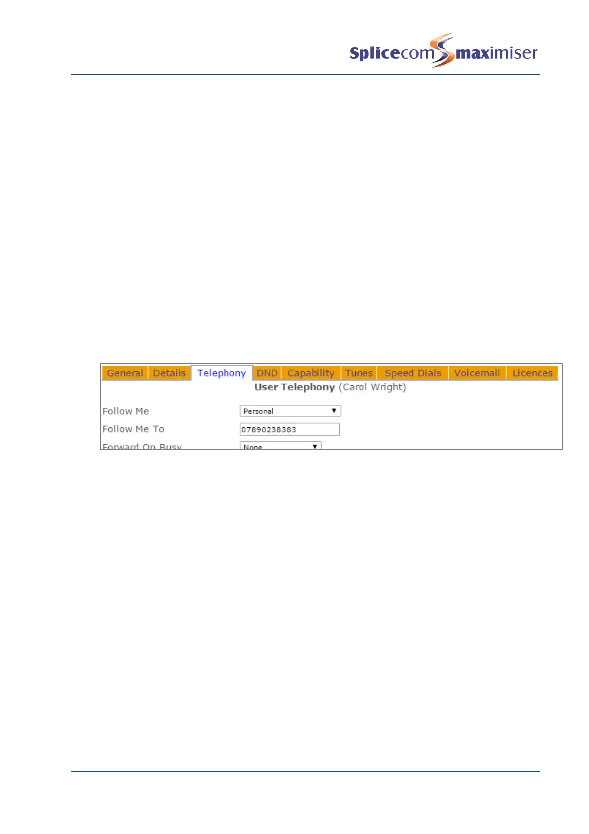 x If the Follow Me To number is busy the call will be routed to the original User’s voicemail, no further