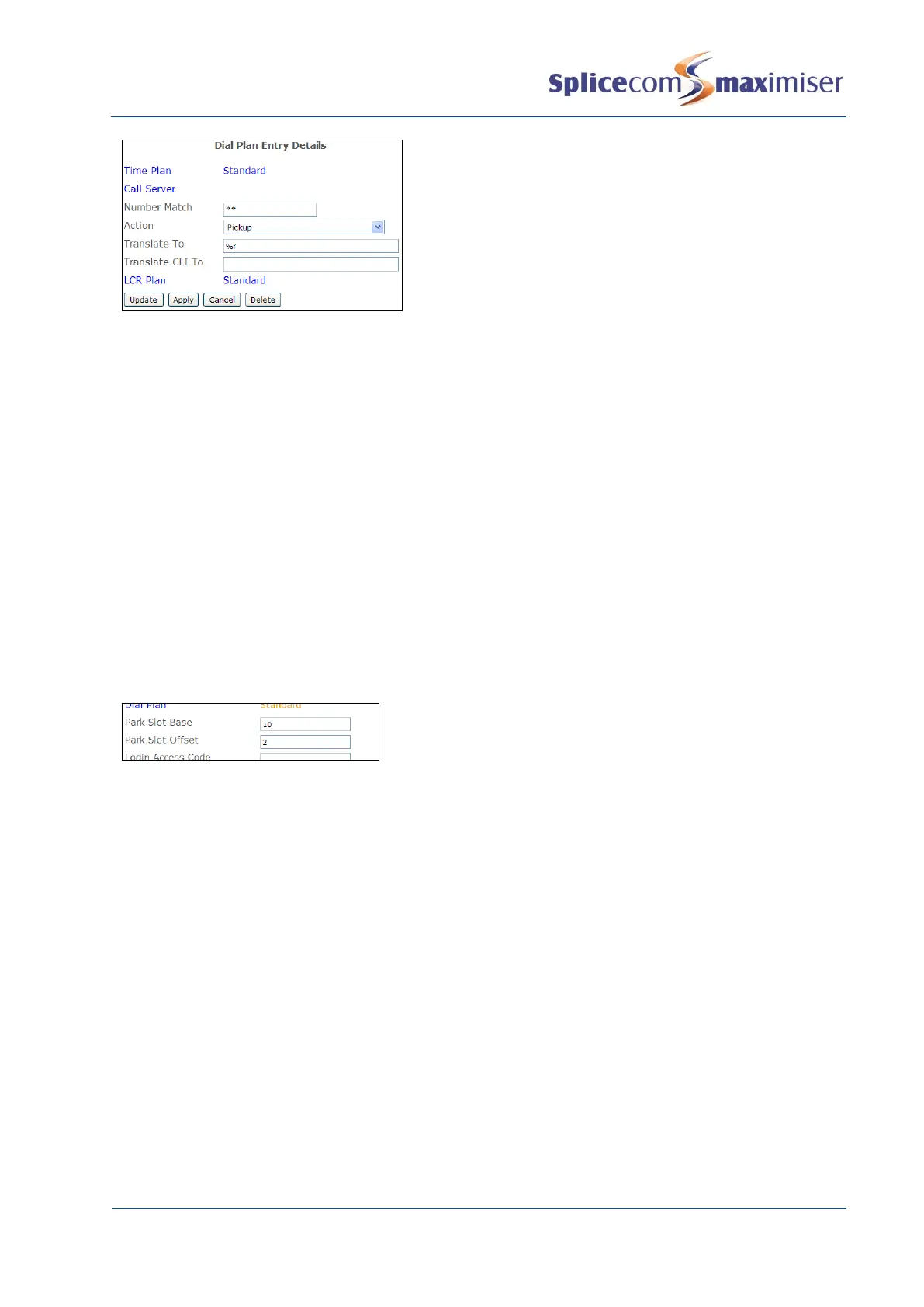 4 In the Park Slot Base field enter the value to be added to the existing park slot numbers, eg 10