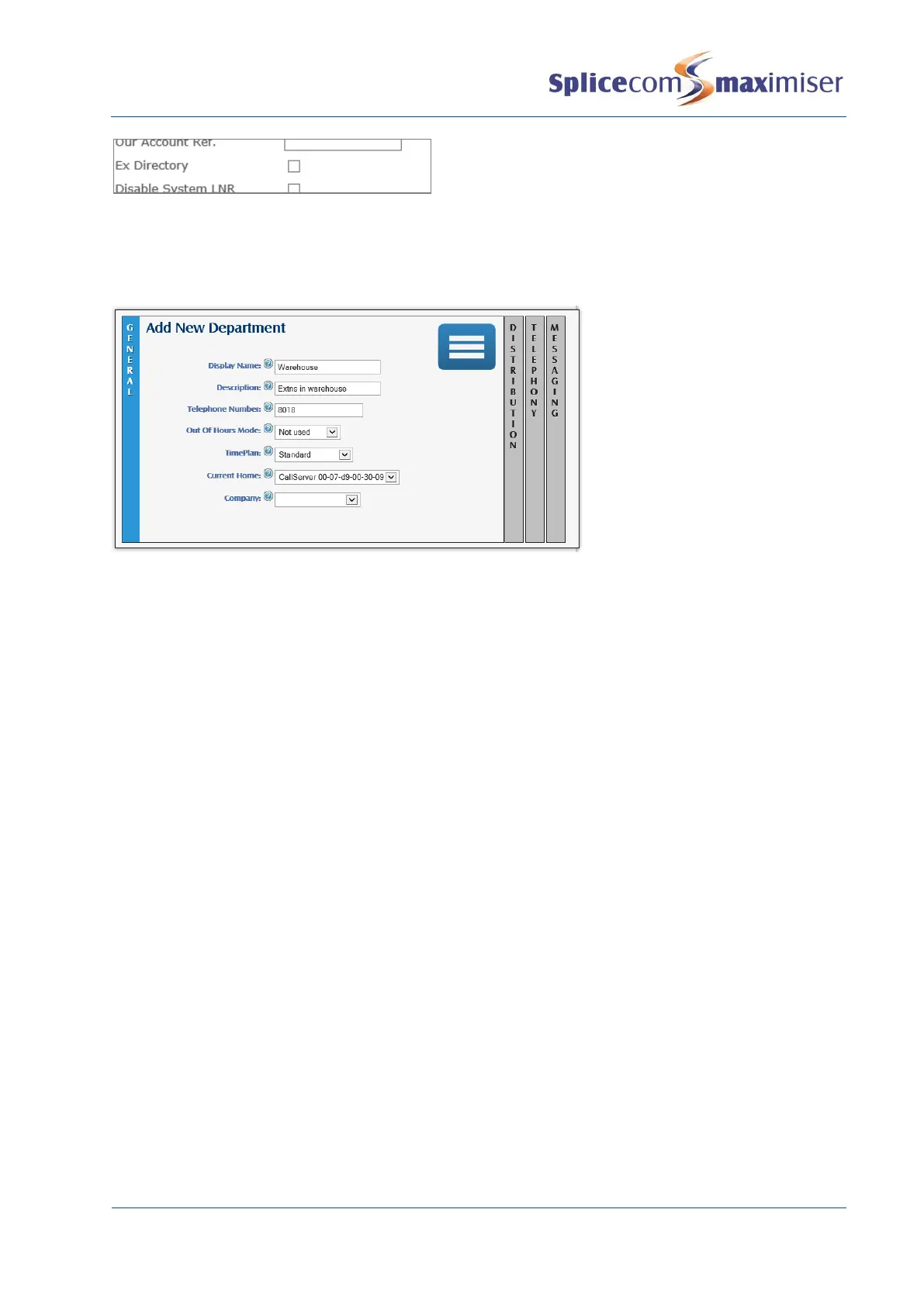 The remaining fields within a Department configuration form are covered in the rest of this section or