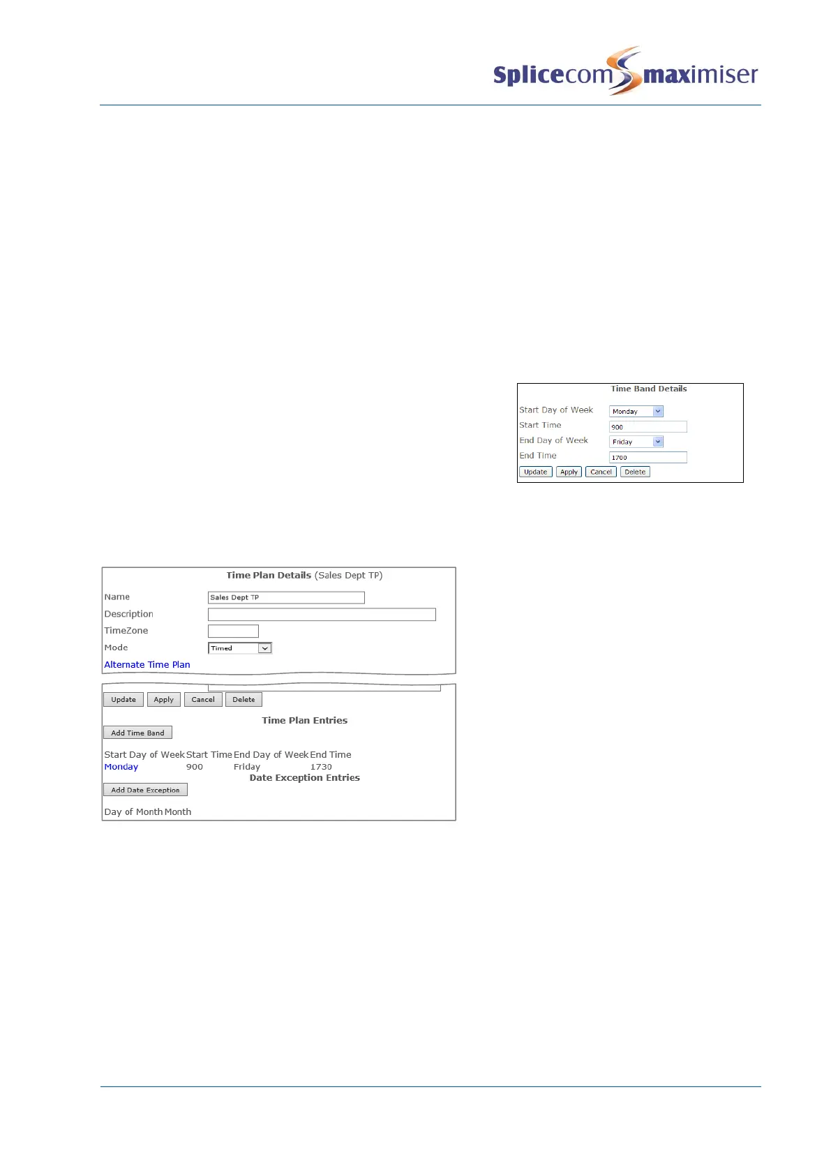 5 Select the In Hours Time Plan field and from the Select Time Plan list select the Time Plan created