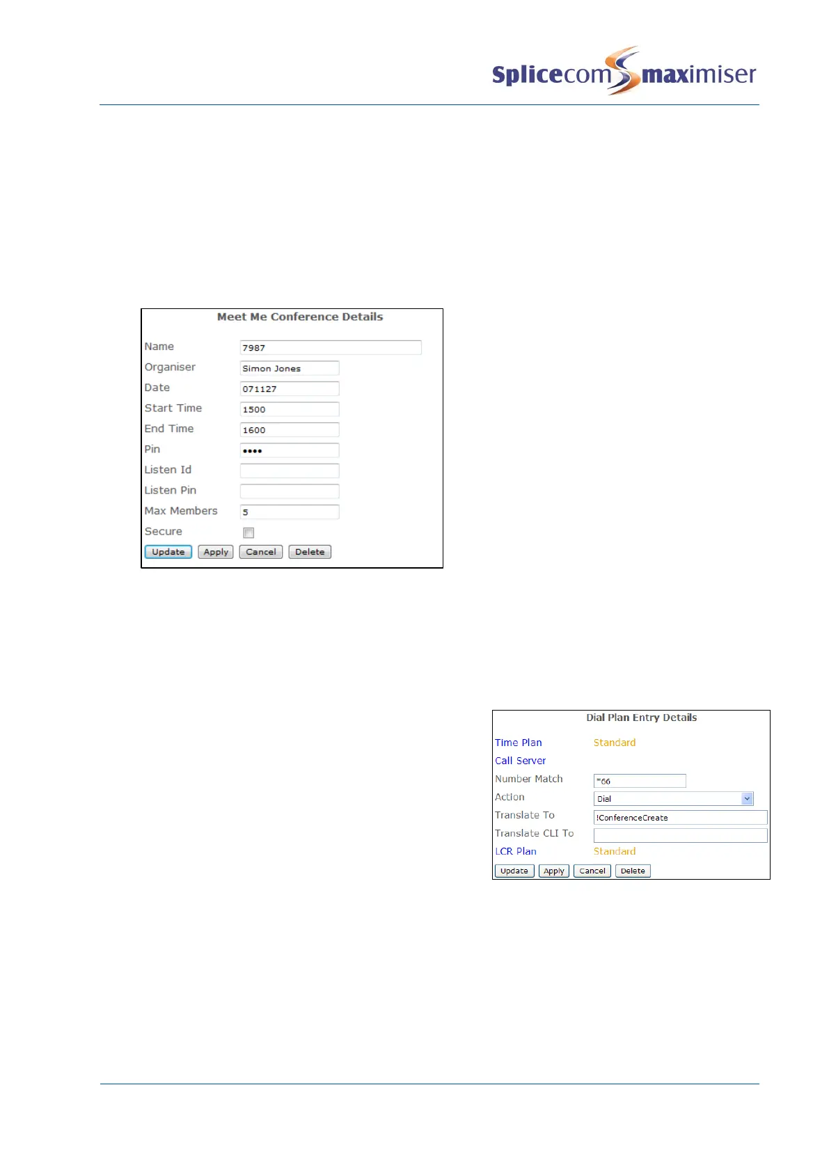 The conference is then initiated via a Dial Plan or DDI Call Plan entry as follows.