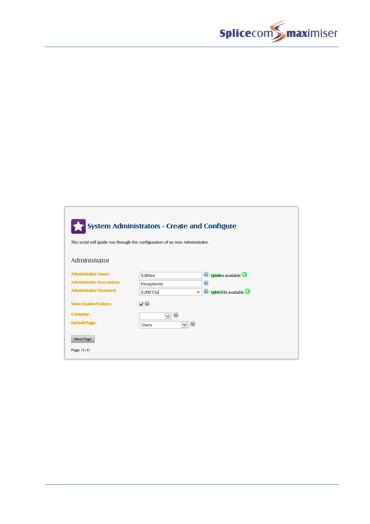 Creating a new Administrator via the wizard