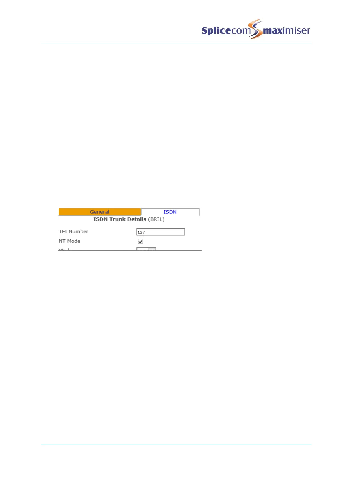 7 In the TEI Number field enter 127 (this may solve communication problems with the remote end.