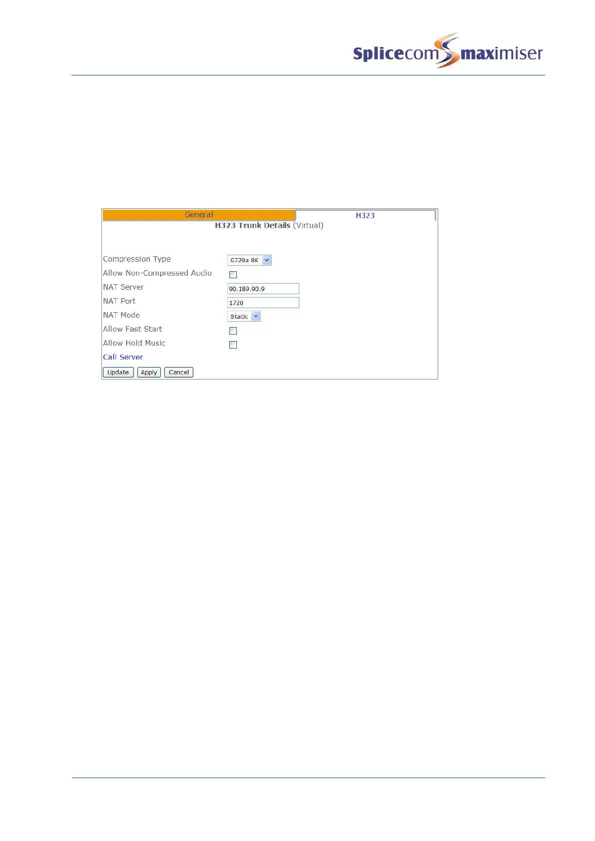 18 From the Compression Type list box select G729A8K, if required, otherwise select None.