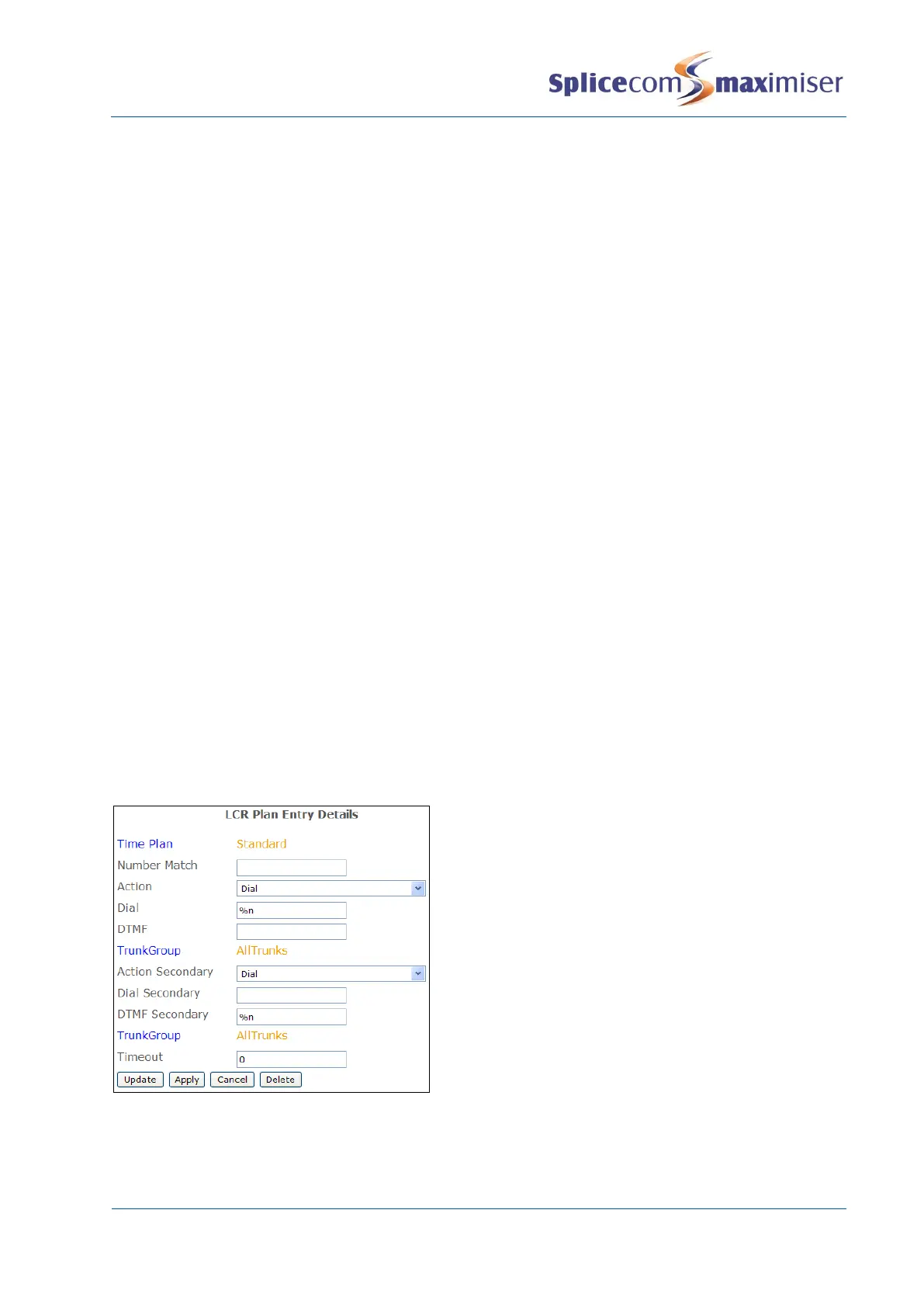 LCR Plan entries. It is recommended that Dial Plans are used for internal dialling and LCR Plans are used