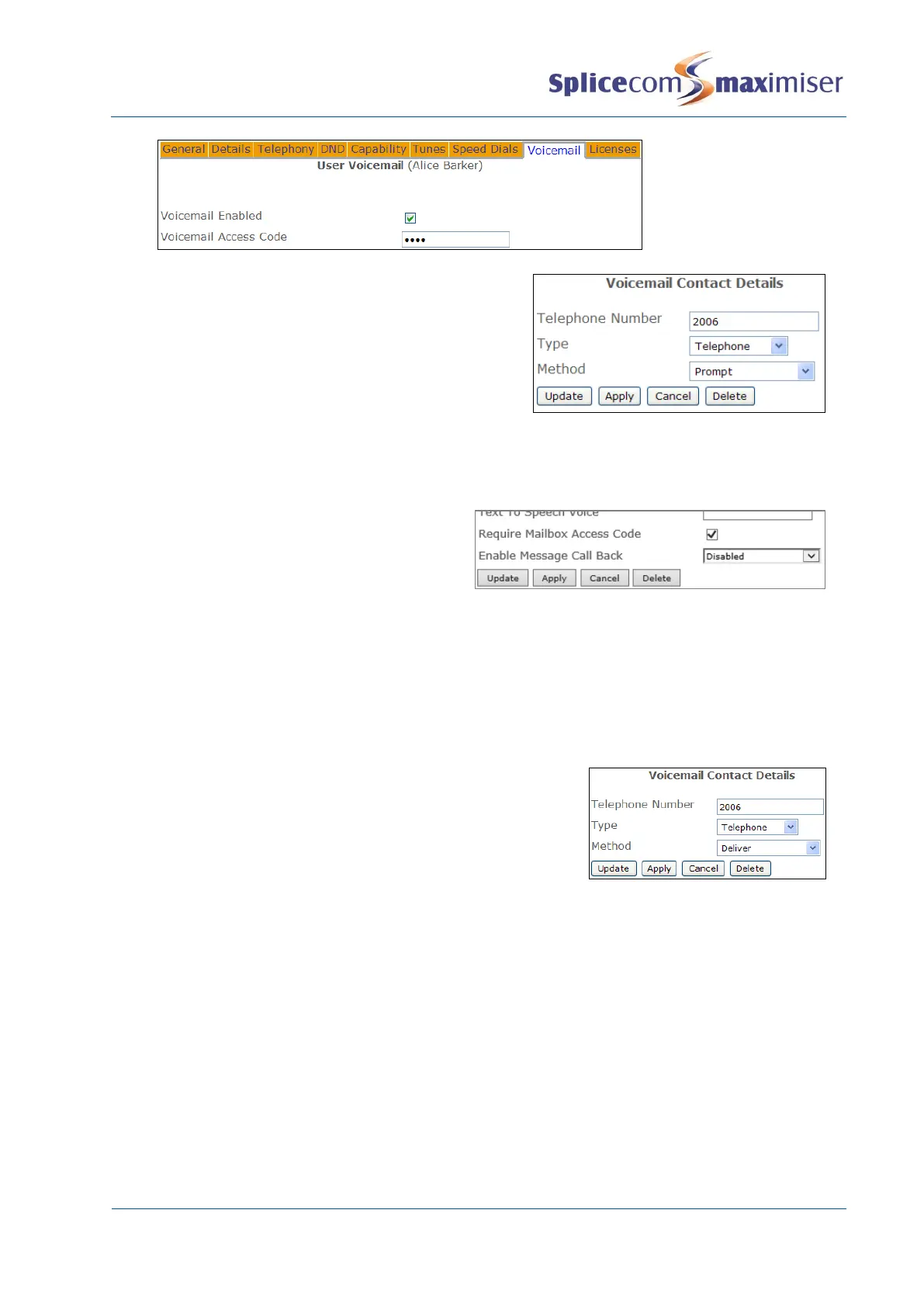 x This facility must be enabled via the relevant Voicemail Port. The Enable Message Call Back field is