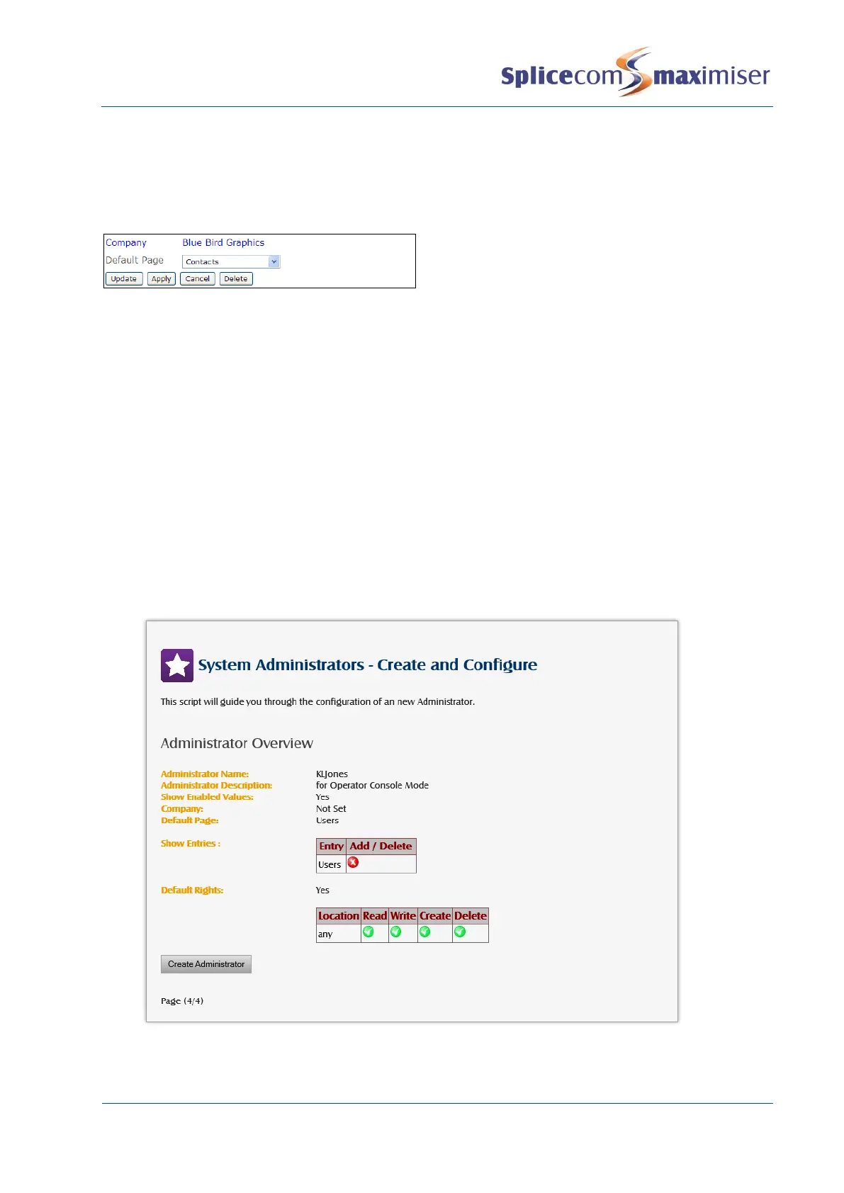 (Please refer to the Creating a new Administrator via the wizard section from page 15 for further
