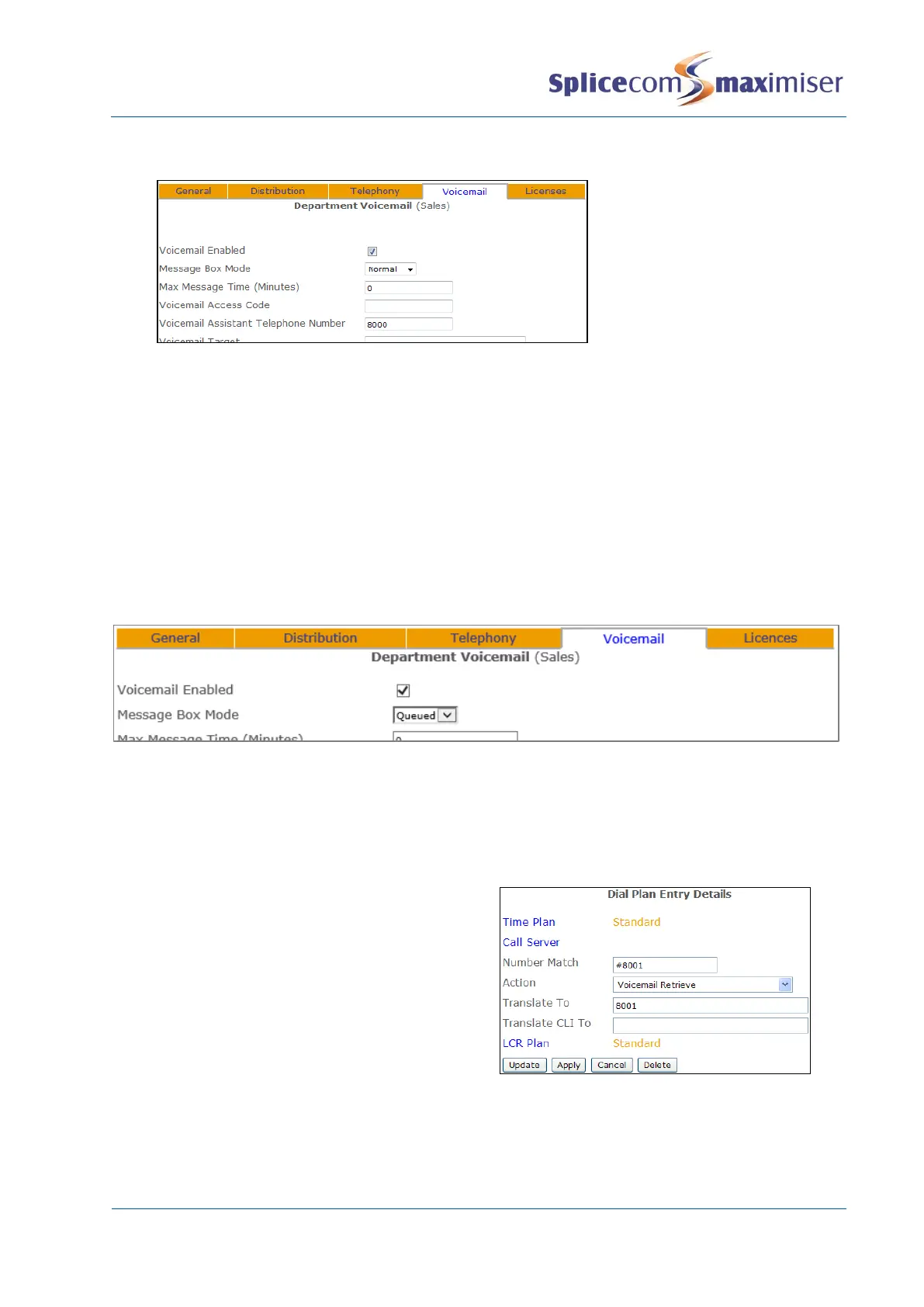 Please note: Ensure that the relevant Voicemail Port has been configured with a Dial Plan otherwise the