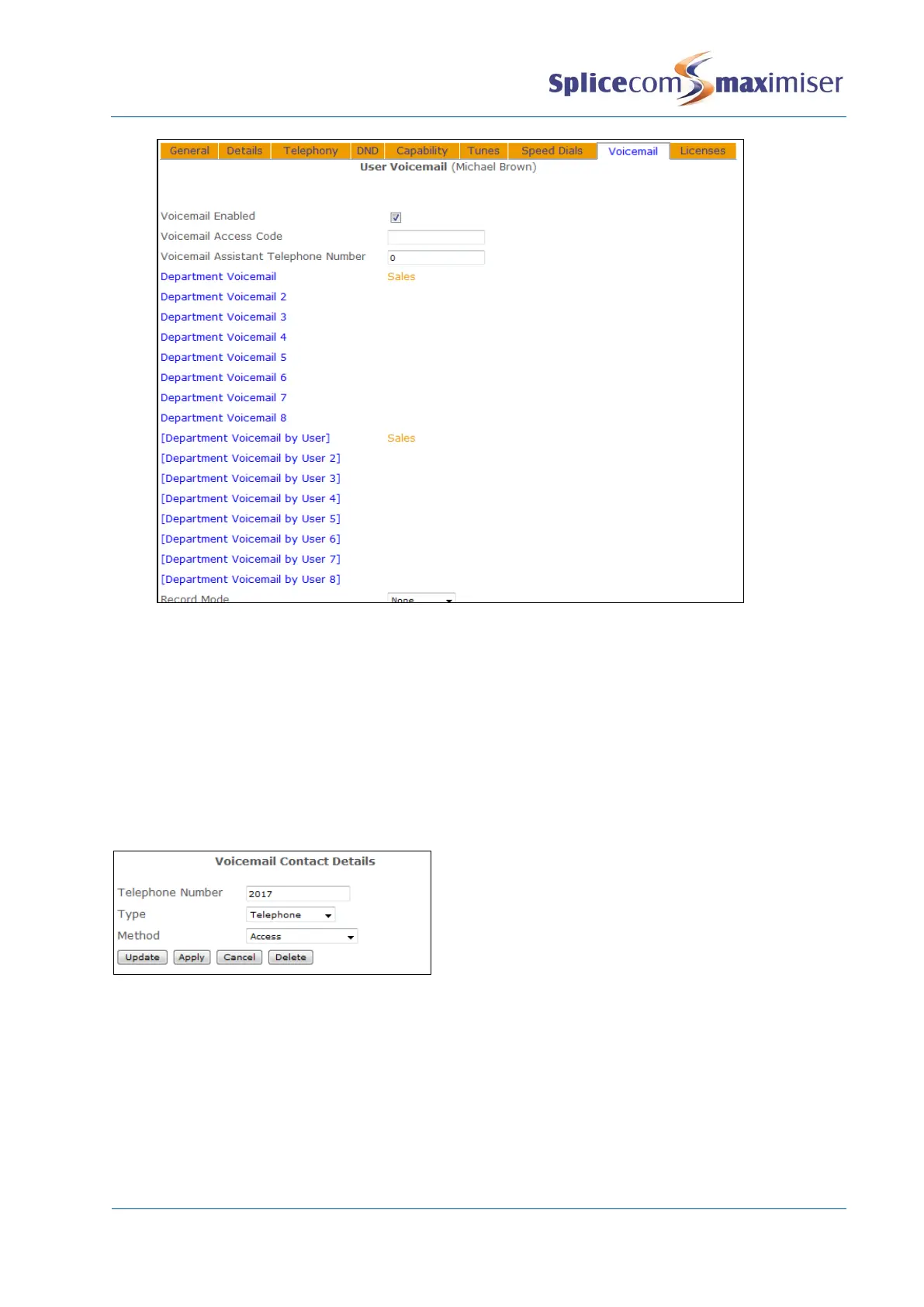 Department’s Voicemail page. The User with the extension number entered in the Telephone Number