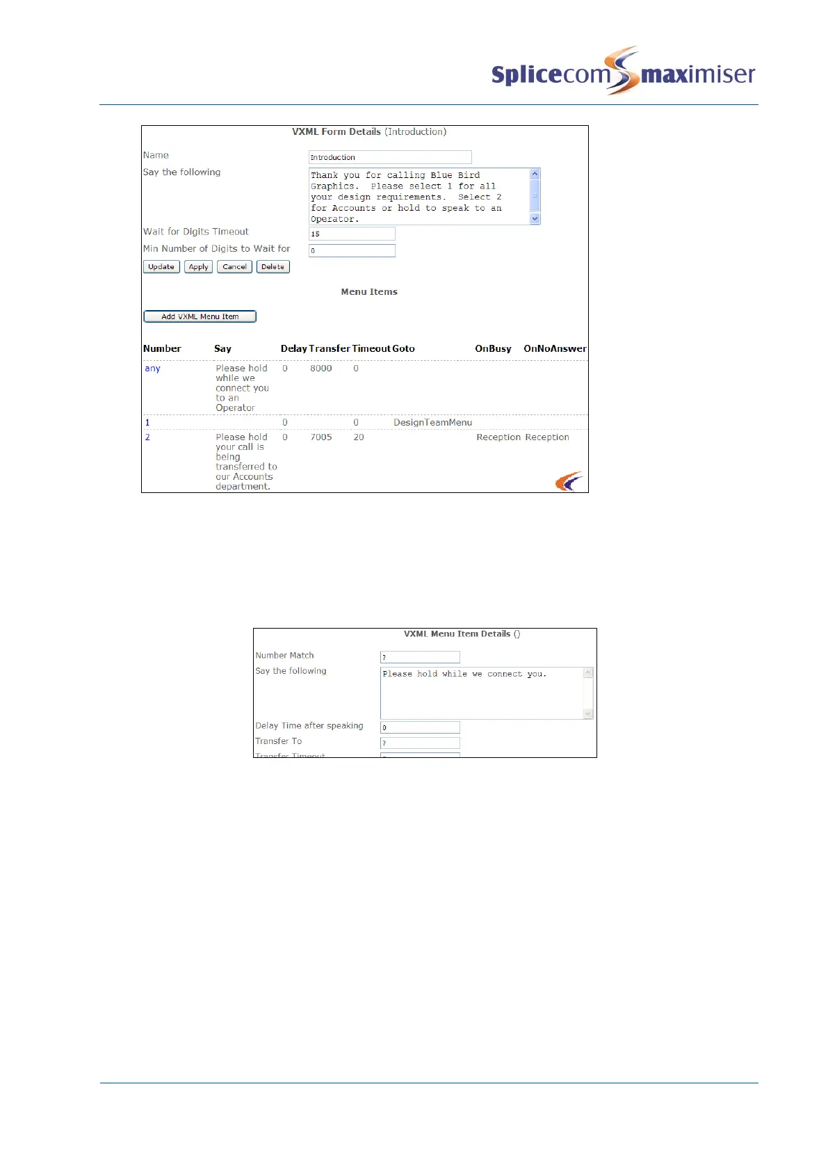 %n = number (eg the caller’s selection or Transfer To extension no)