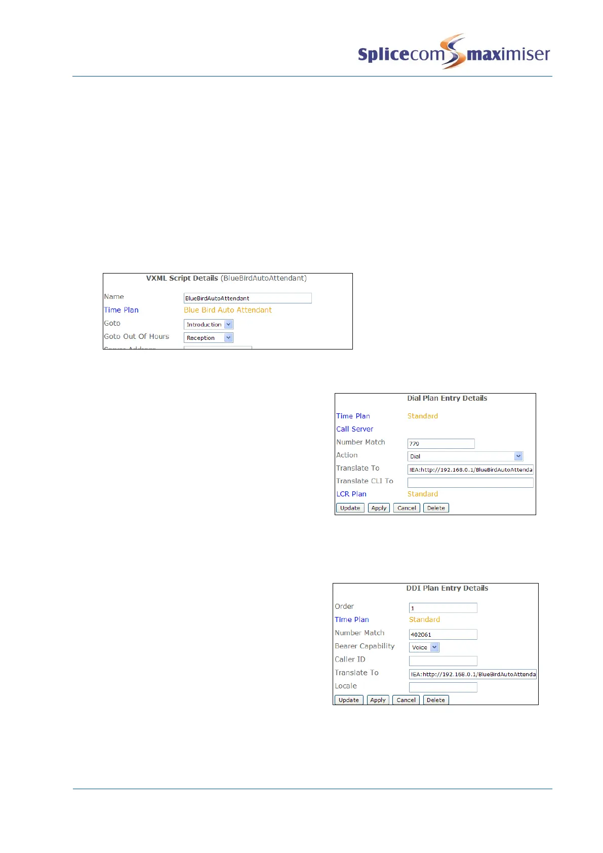 Time Plan please refer to page 169) then the required VXML Script should be configured as follows: