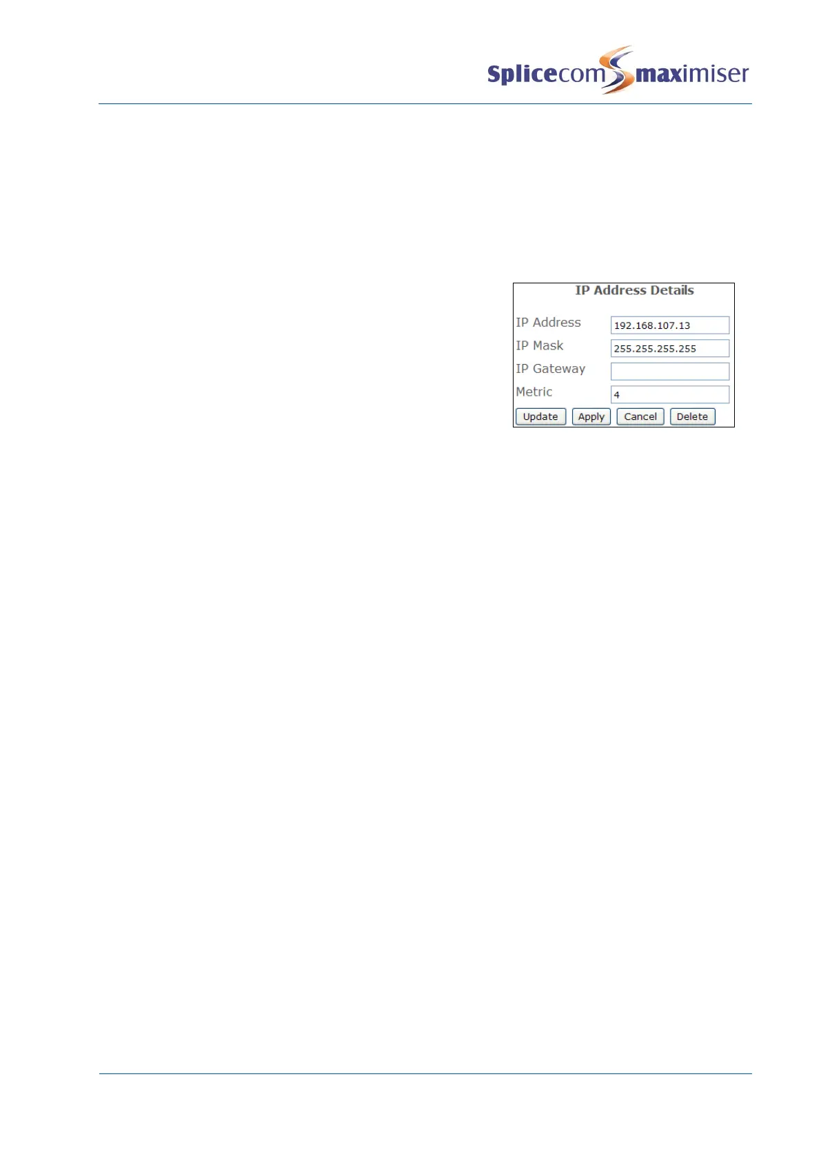 6 Enter the IP Address, IP Mask and Metric in the relevant