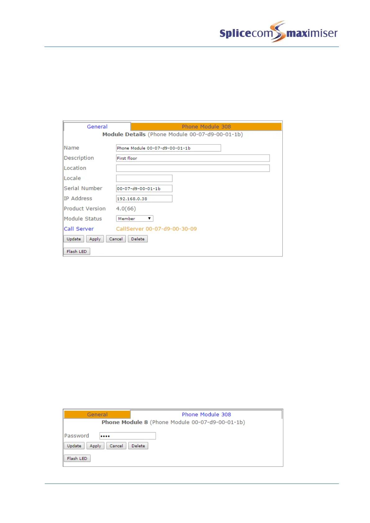 When accessing the configuration web pages for an P308 as described below, the module’s password is
