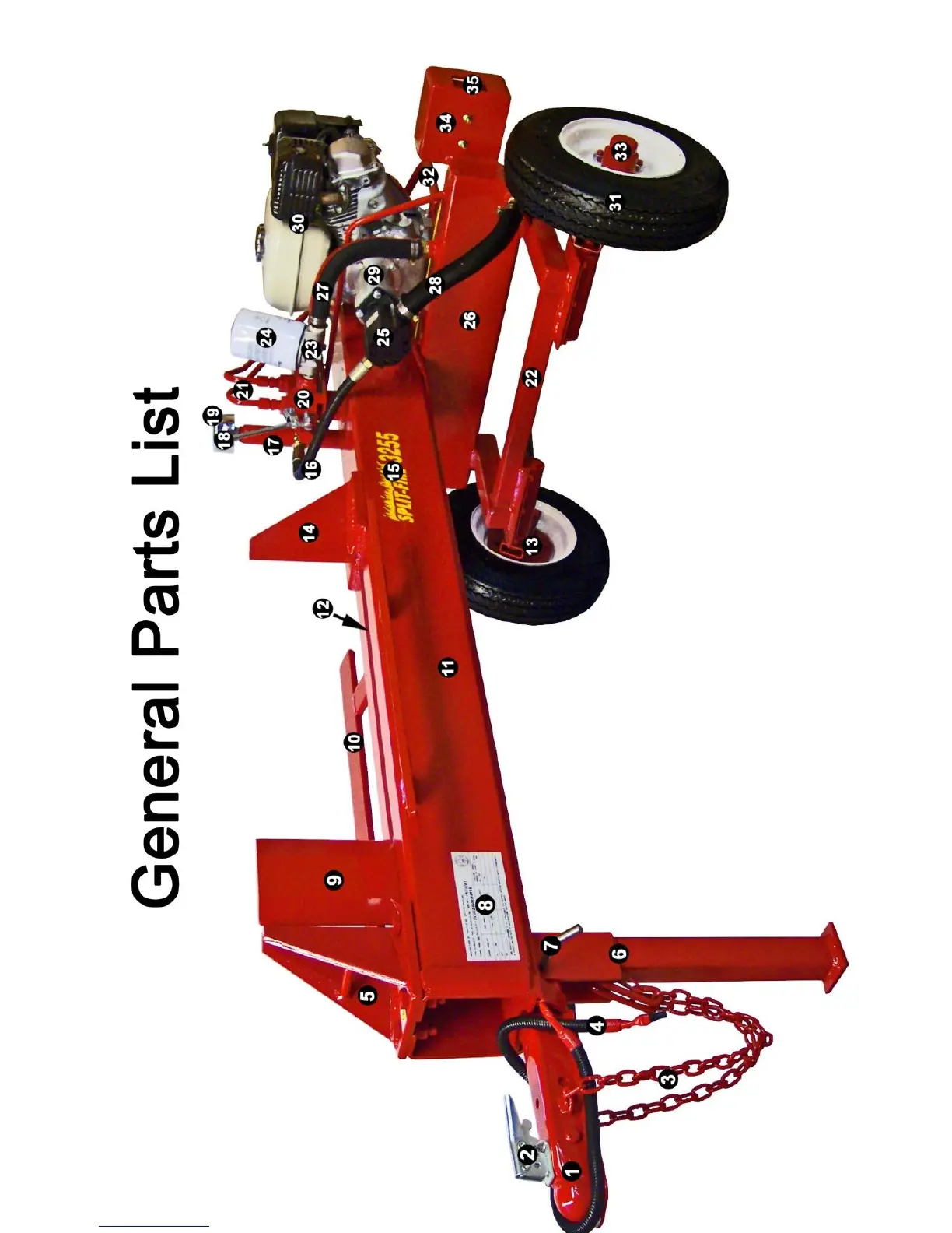 Split-fire Log Splitter - General Parts List