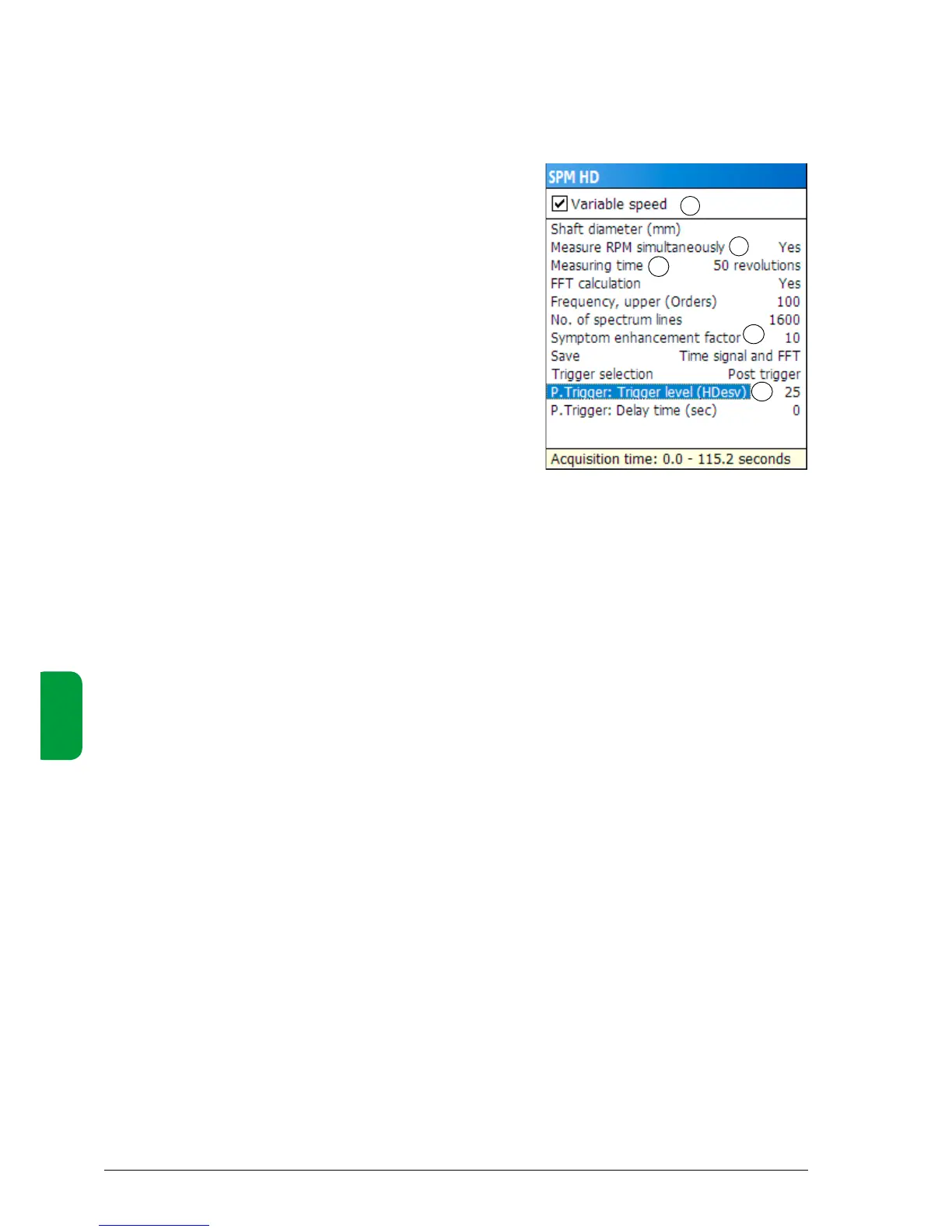 When measuring on variable speed machines, an ‘RPM trigger’ can be used to determine when to start