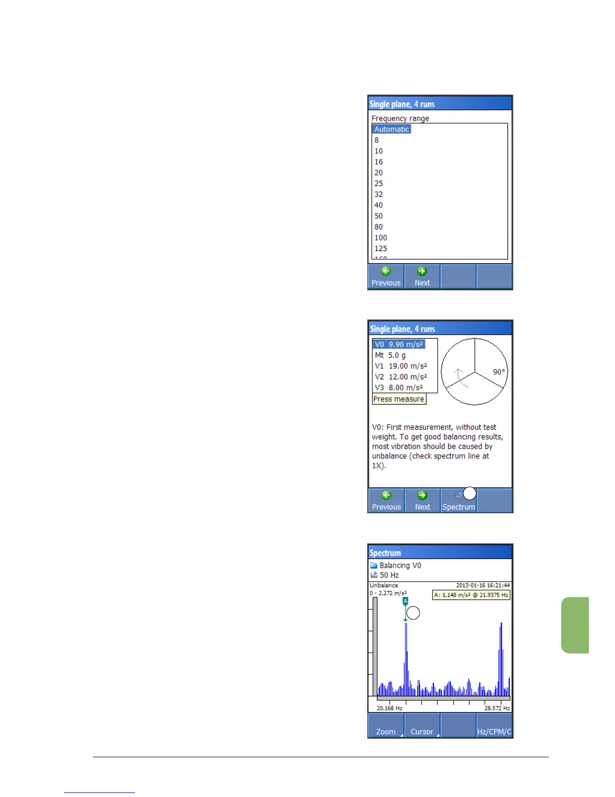 unbalance), press F2 (‘Cursor’) > F1 (‘Cursor A’),
