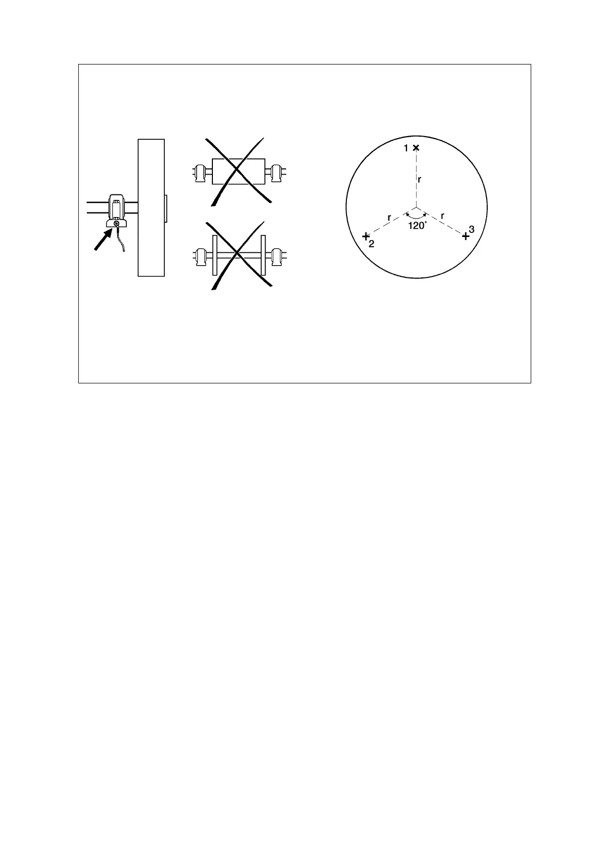 at an equal radial distance r from the shaft, and 120° removed from each other. Number the points