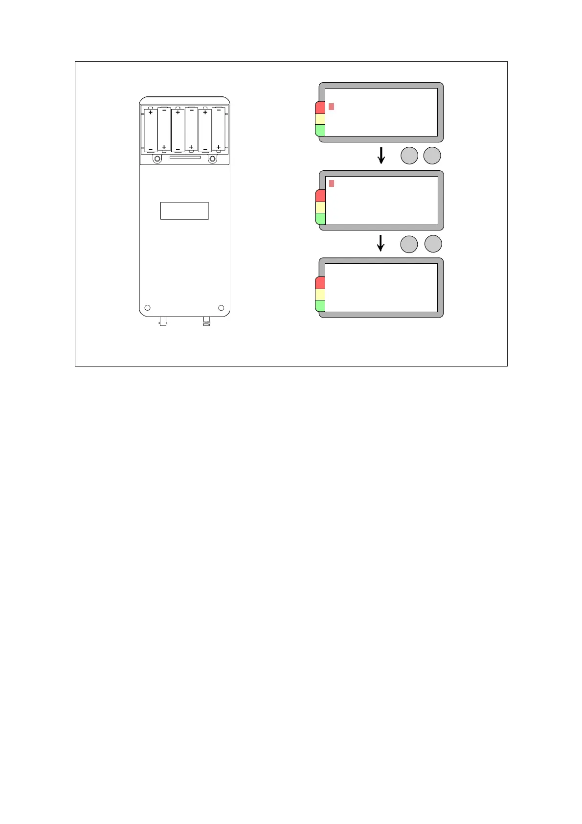 The instruments are powered by 6 batteries type MN 1500 LR6, 1.5 V. The battery compartment is