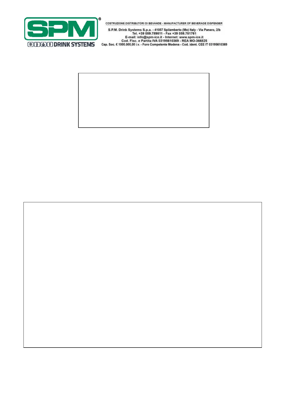 Le descrizioni e le illustrazioni sono riferite alla specifica macchina/impianto in oggetto. SPM DRINK SYSTEMS si