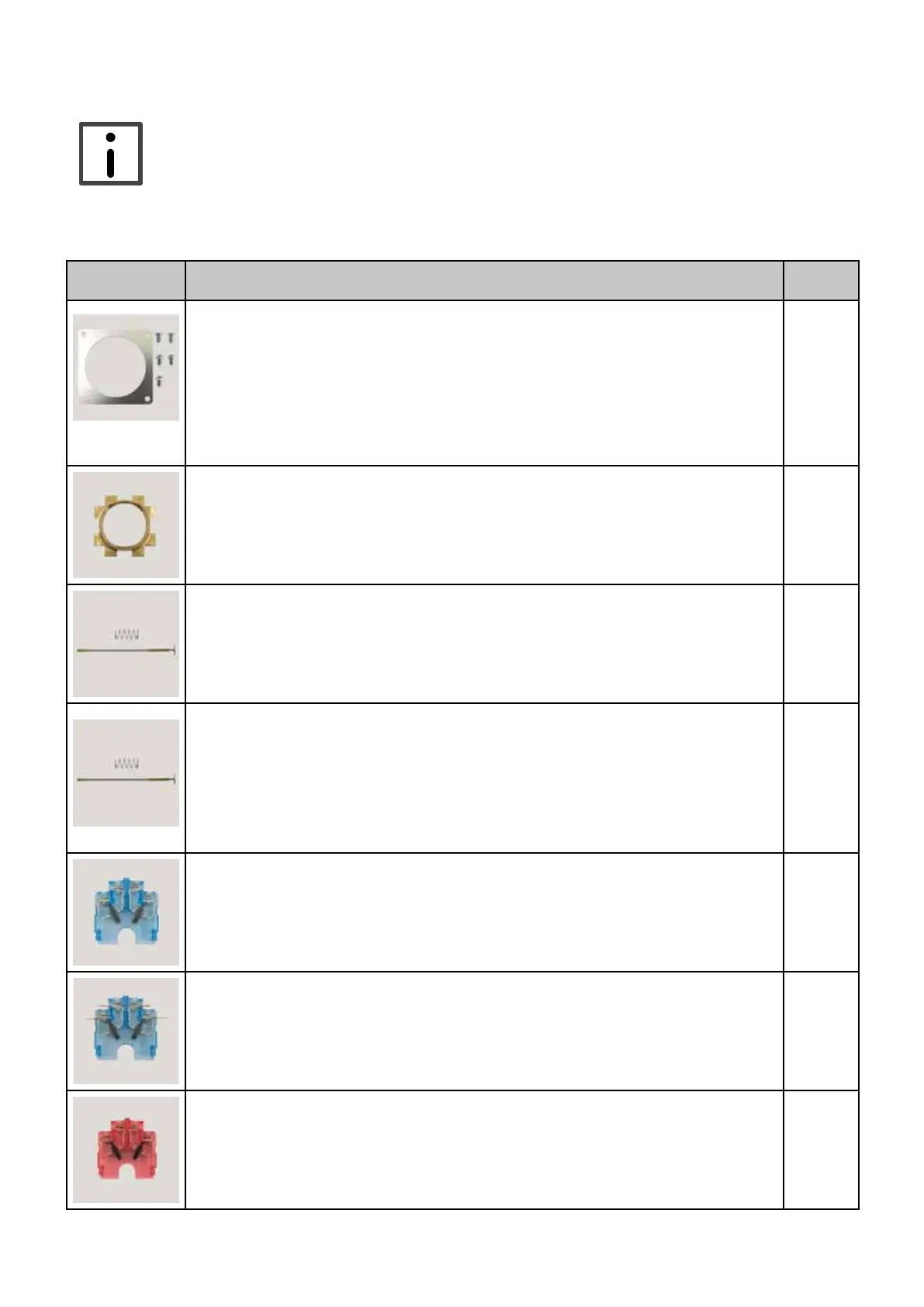 In der nachfolgenden Tabelle nden Sie die Ersatzteile für alle Ausführungen.