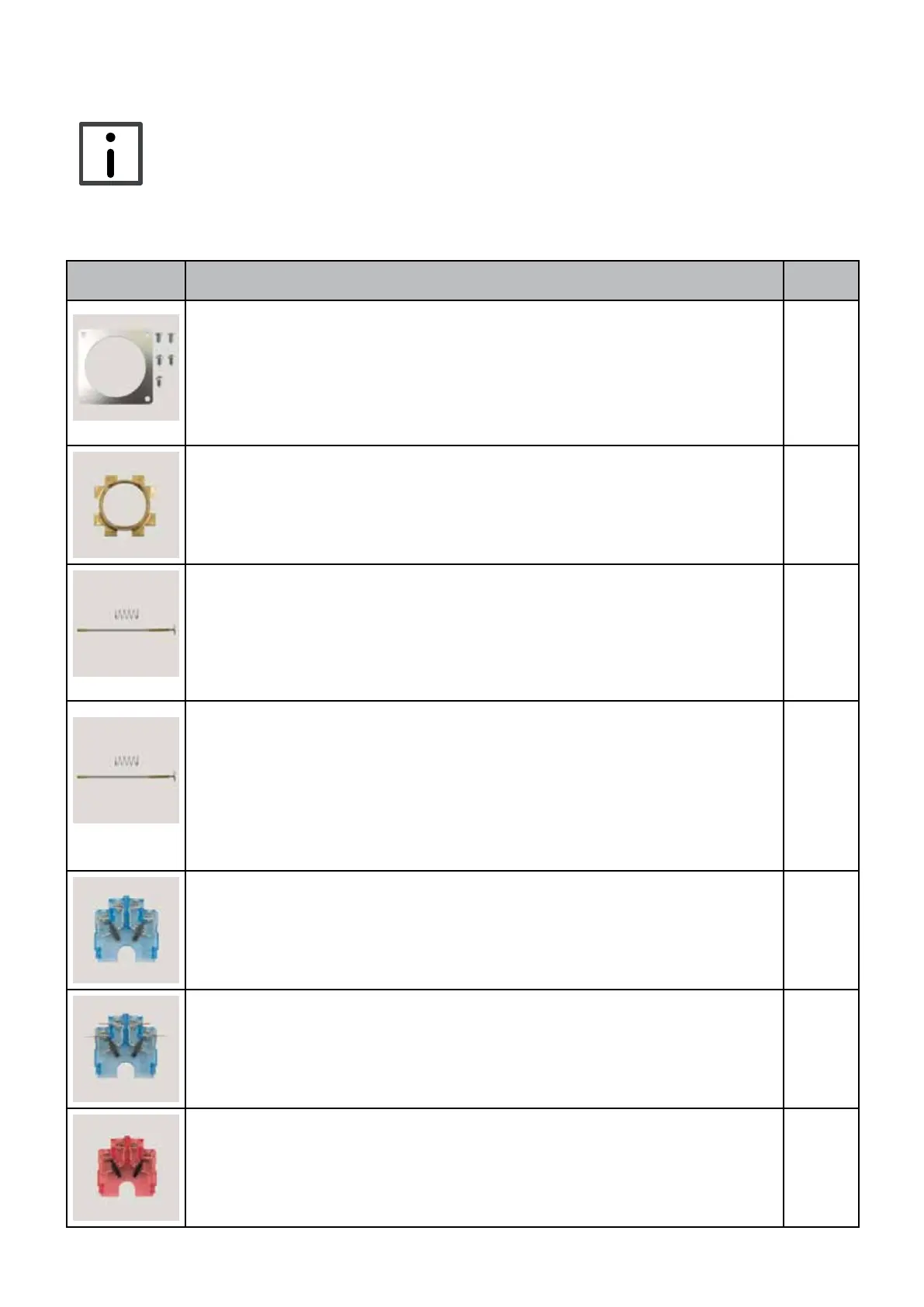 In the following table you will nd the spare parts for all versions.