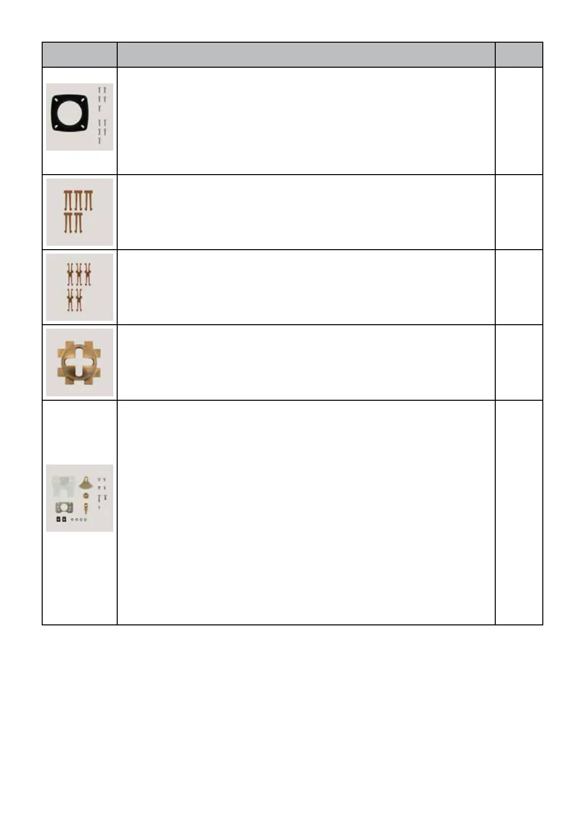 Spare part Name/items supplied No.
