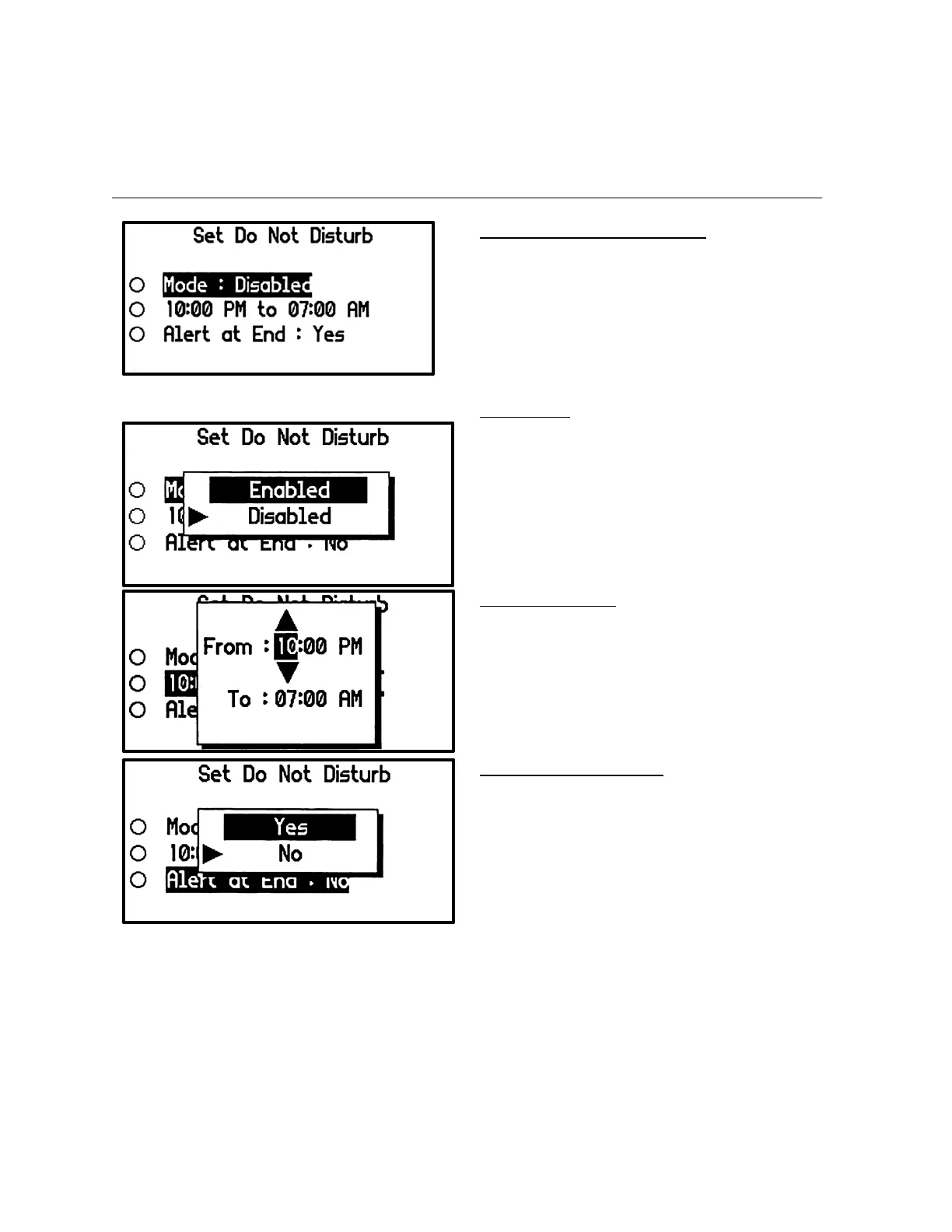Set Do Not Disturb Menu Screen