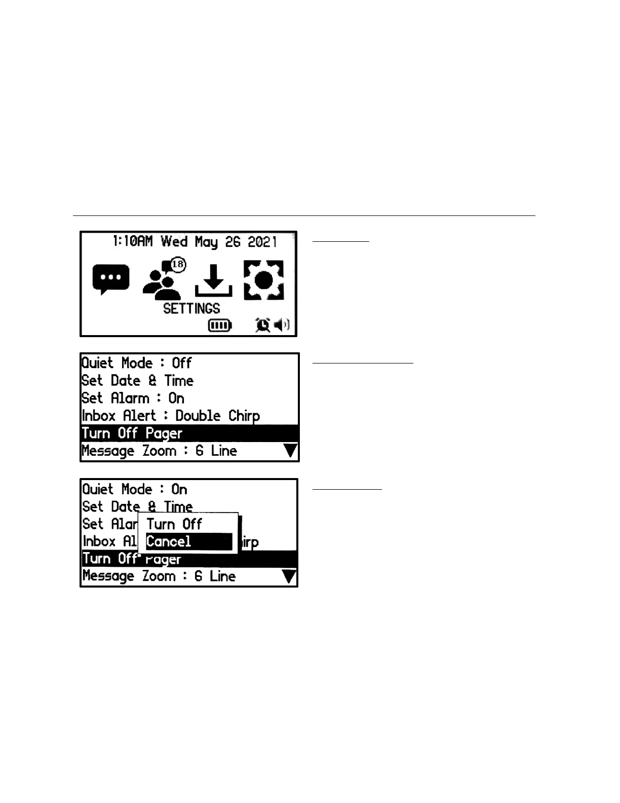 • The Pager Off screen will appear