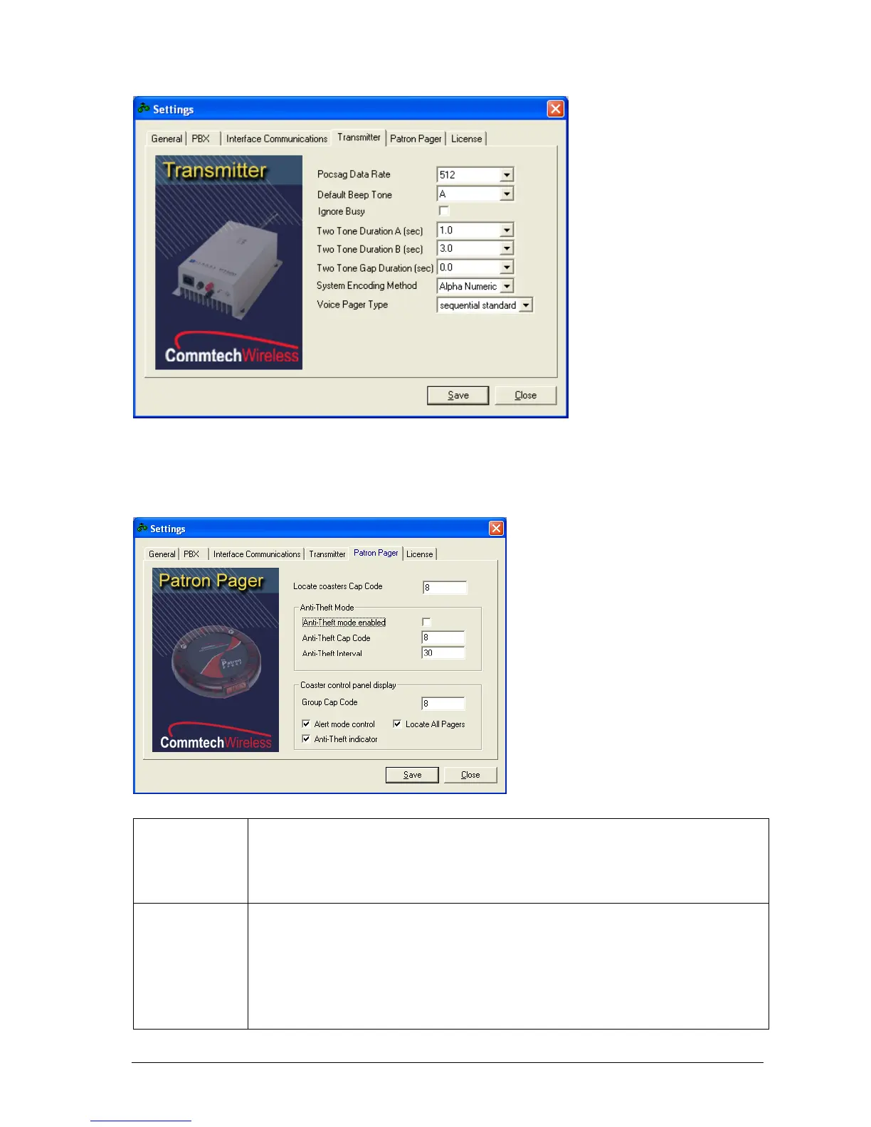 If the MAXPage unit is used in a Patron Pager system, this tab contains some settings which need to be filled out.