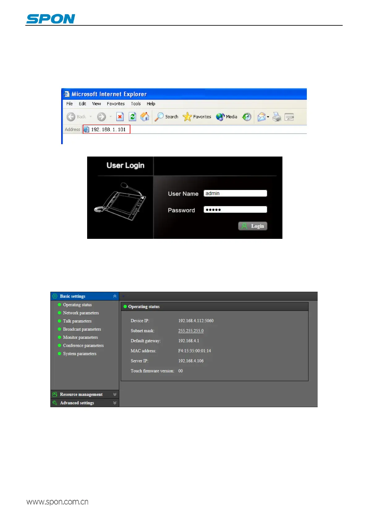 (1)Please input the video paging console IP address to the browser address bar (the factory default IP address is