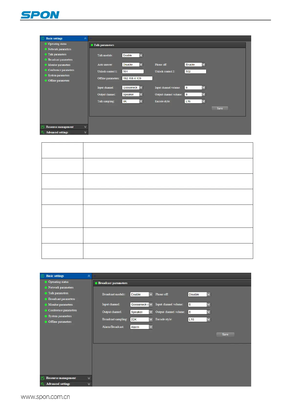 Talk parameters