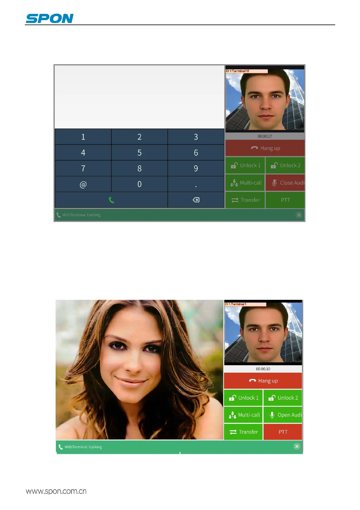 During the talking, click the call transfer button, input the transfer target terminal ID number, and then click the dial button, the